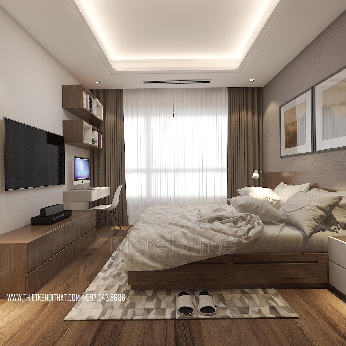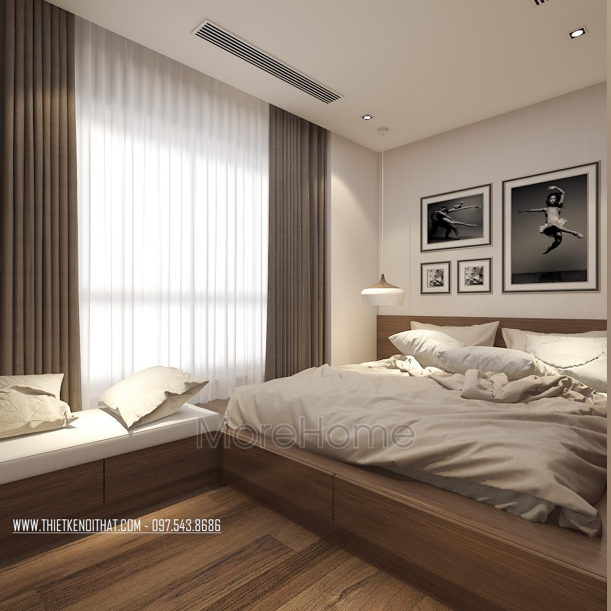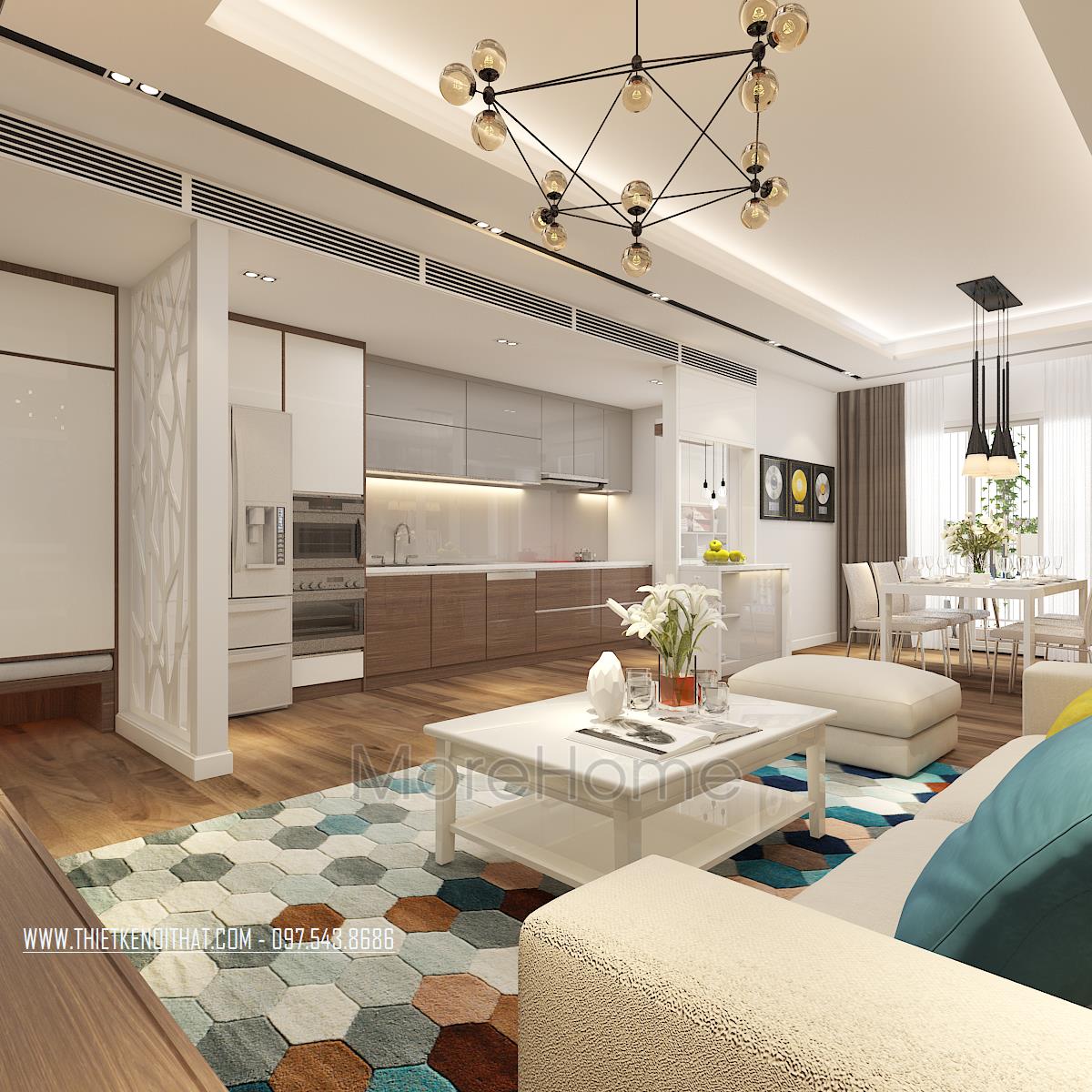 Với thiết kế nội thất chung cư hiện đại căn hộ nhà anh Hùng phần nào thể hiện được sự tinh tế trong sử dụng màu sắc, nghệ thuật trong kết hợp ánh sáng tự nhiên và ánh sáng nhân tạo, sự tâm huyết trong thiết kế không gian phù hợp với công năng sử dụng cũng như tận dụng tối đa được diện tích sử dụng. Đây là một phần yêu cầu của gia chủ cũng như là múc tiêu mà kiến trúc sư của Morehome hướng tới “mang lại không gian sống thoải mái nhất cho gia chủ ”.
