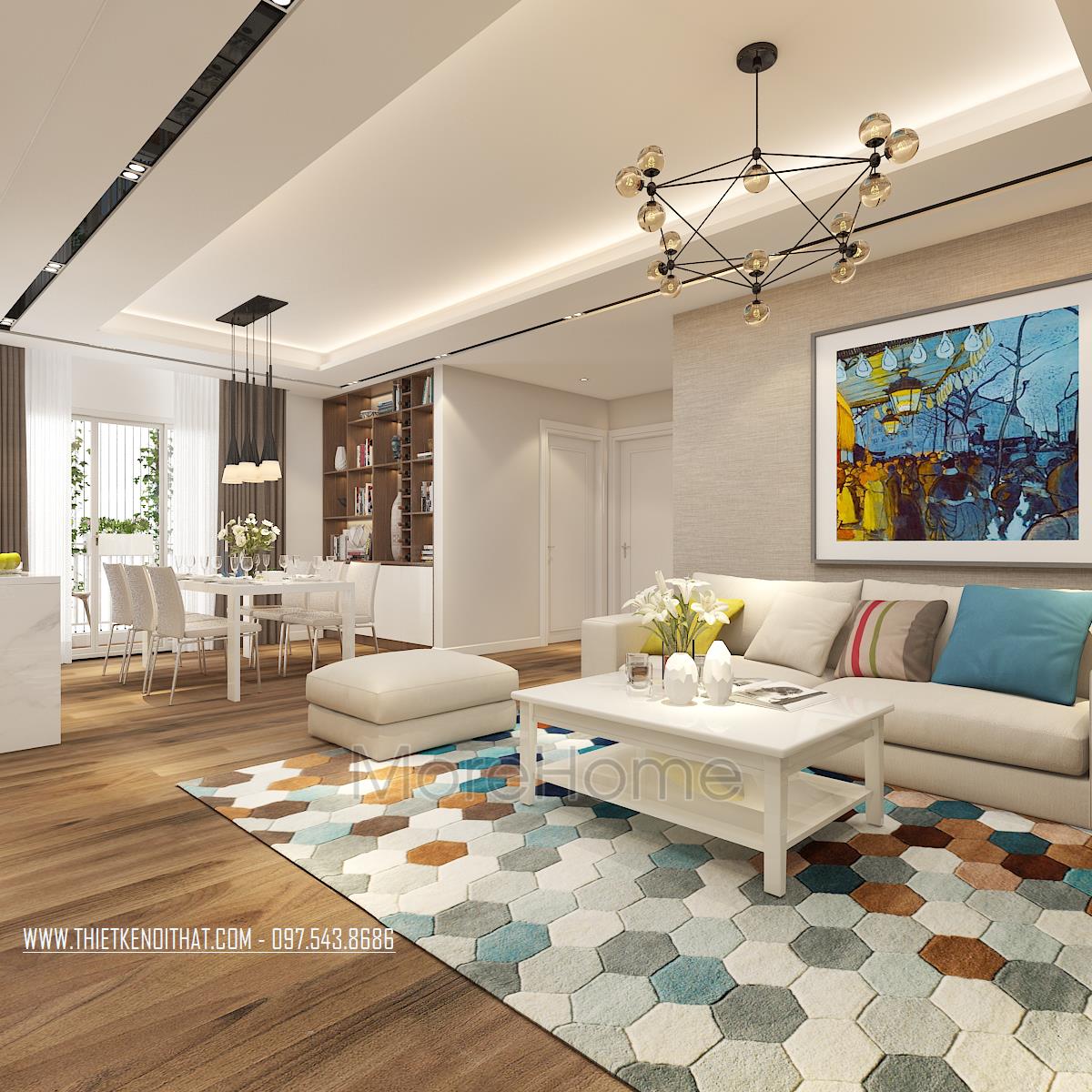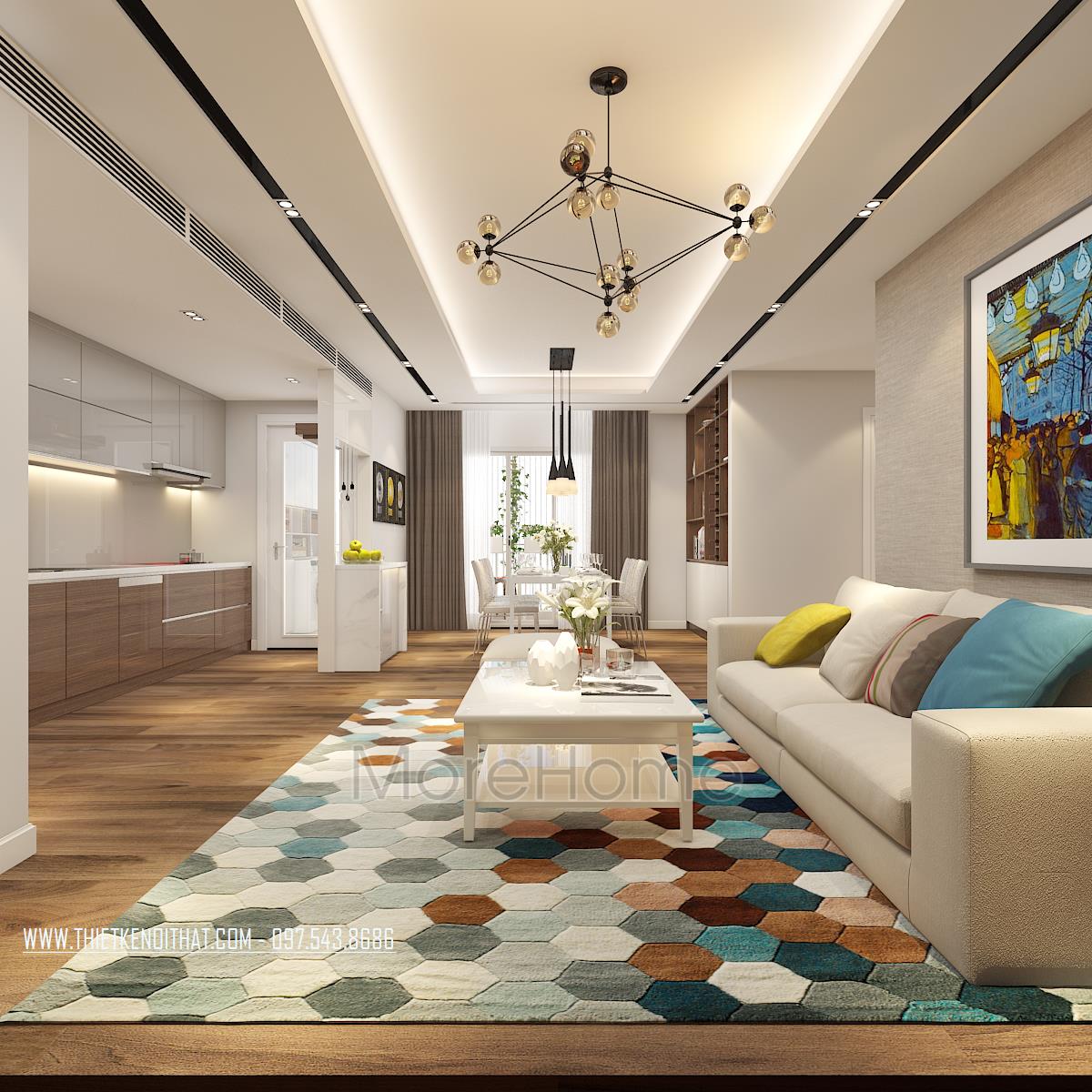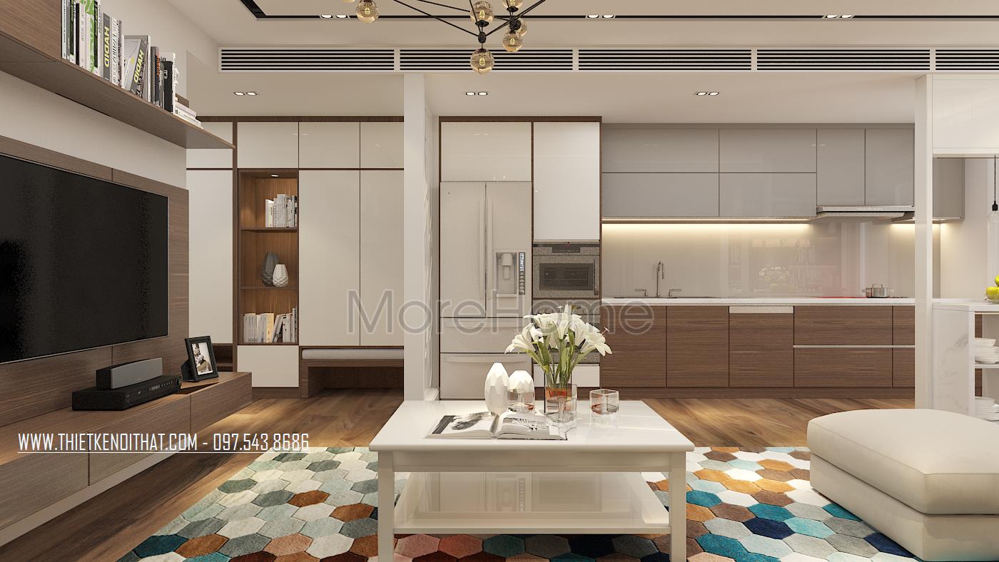 Với thiết kế nội thất chung cư hiện đại căn hộ nhà anh Hùng phần nào thể hiện được sự tinh tế trong sử dụng màu sắc, nghệ thuật trong kết hợp ánh sáng tự nhiên và ánh sáng nhân tạo, sự tâm huyết trong thiết kế không gian phù hợp với công năng sử dụng cũng như tận dụng tối đa được diện tích sử dụng. Đây là một phần yêu cầu của gia chủ cũng như là múc tiêu mà kiến trúc sư của Morehome hướng tới “mang lại không gian sống thoải mái nhất cho gia chủ ”.