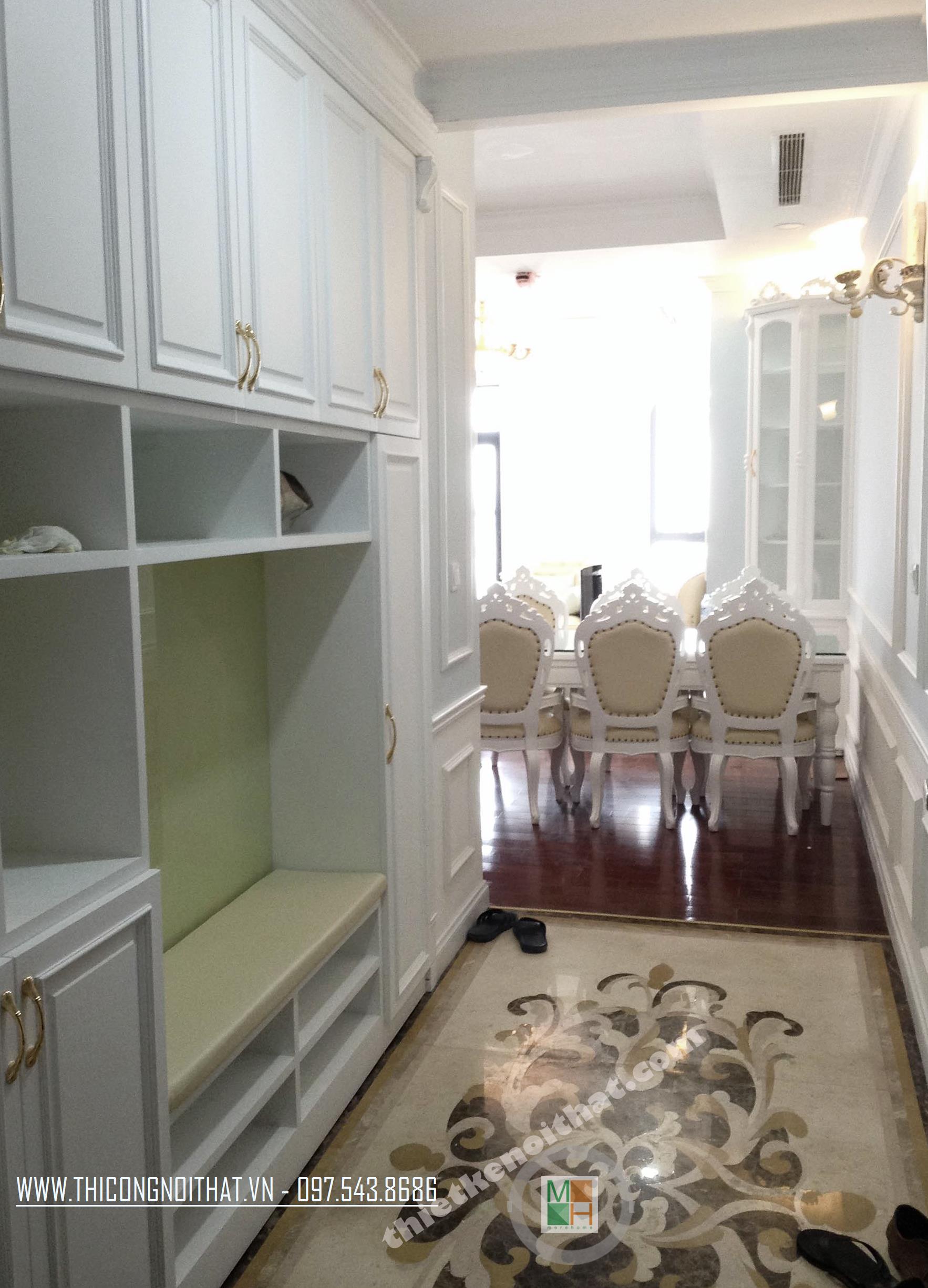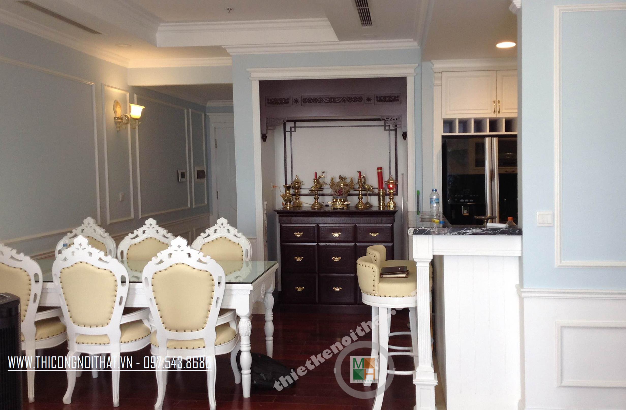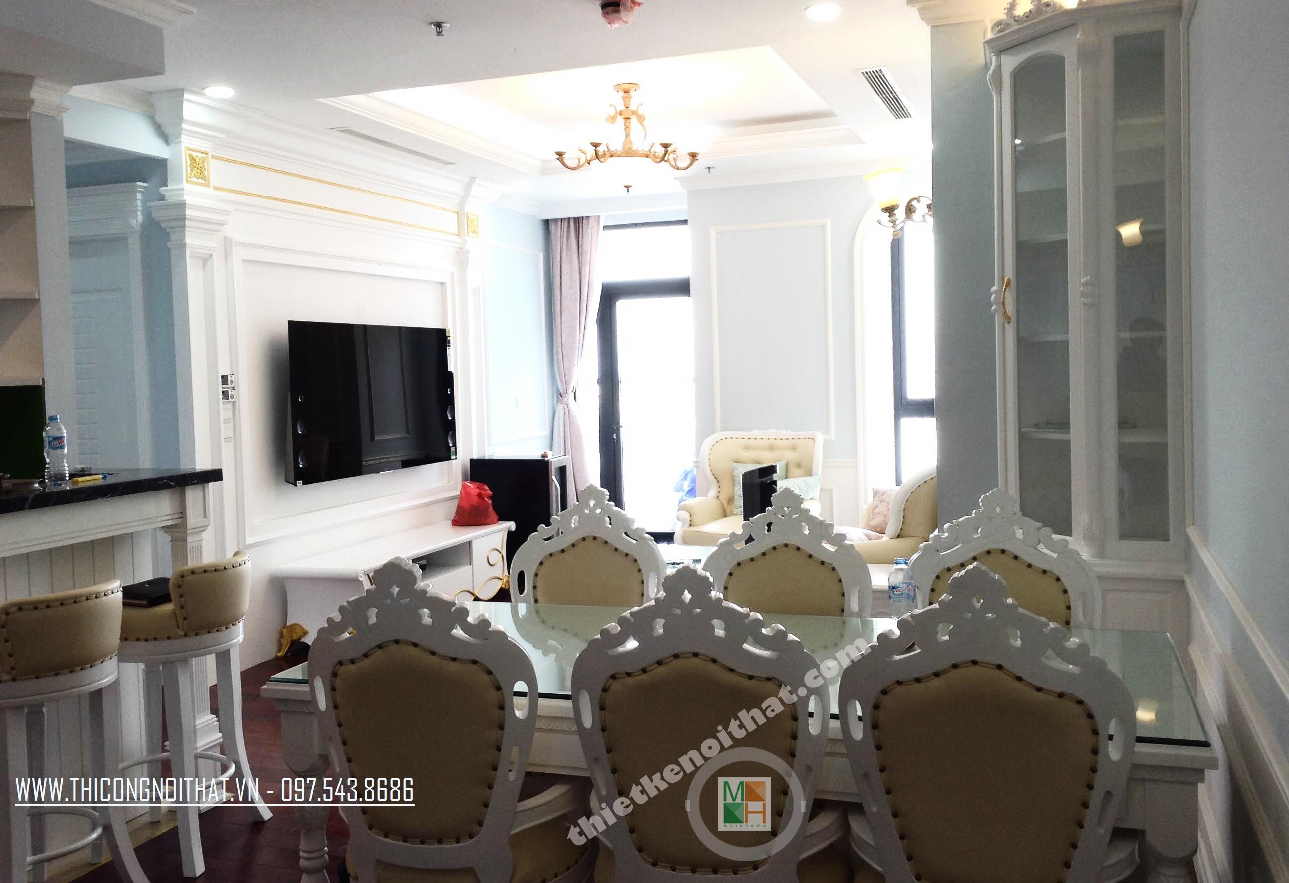 Morehome tiến hành thi công nội thất chung cư Royal City nhà chị Ngọc với thiết kế theo phong cách tân cổ điển xen lẫn cùng với những nét chấm phá hiện đại, đem lại cho căn hộ sự pha trộn vô cùng khéo léo và hài hòa giữa hơi thở hiện địa và cổ điển.