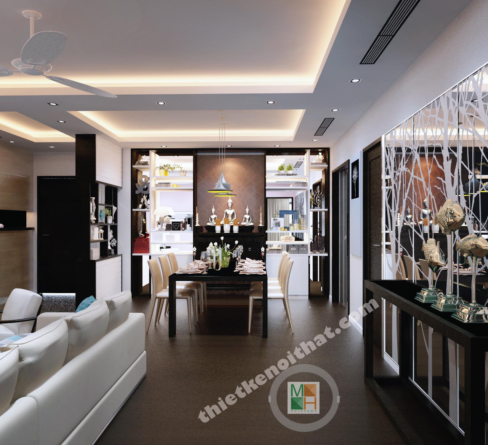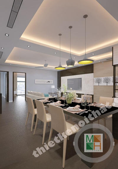 Hiện đại và ấn tượng khi sử dụng màu sắc tương phản là điểm nổi bật trong mẫu thiết kế nội thất chung cư Royal City này.