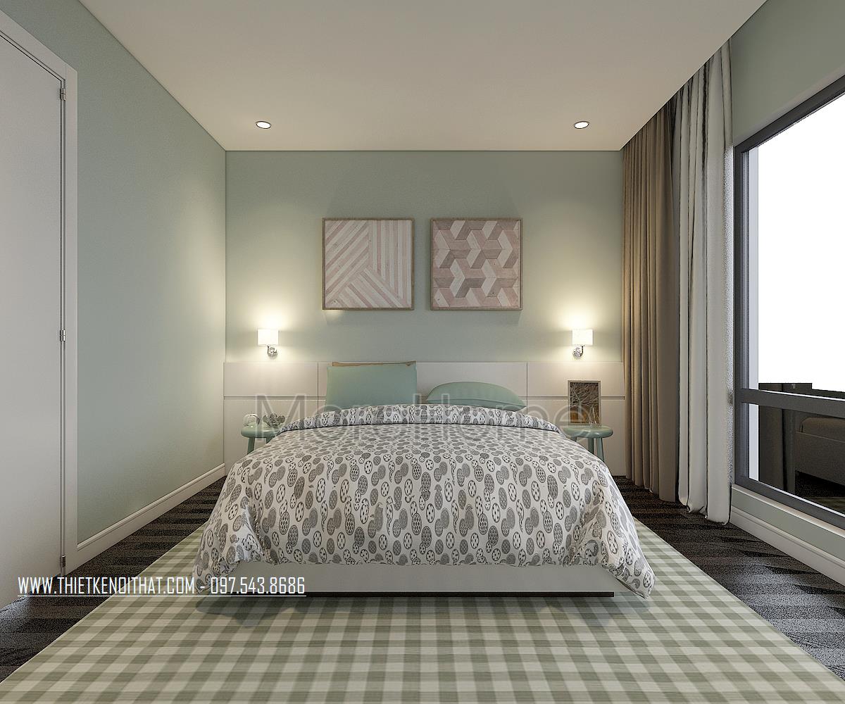 Cuối cùng là thiết kế nội thất phòng ngủ hiện đại. Tone màu mà kiến trúc sư lựa chọn cho các không gian phòng ngủ cũng đều là các tone màu nhẹ nhàng mang đến sự ấm áp và yên bình cho không gian riêng tư. Các thiết kế tủ kệ được kết hợp khéo léo vừa đảm bảo tính công năng lại không làm mất đi vẻ đẹp thẩm mỹ và còn góp phần lớn giúp tiết kiệm không gian. Các vật liệu nhẹ như kính cường lực, gỗ cũng được sử dụng giúp tăng độ sáng và mở cho căn phòng, tránh các thiết kế built-in cứng nhắc và đơn điệu.