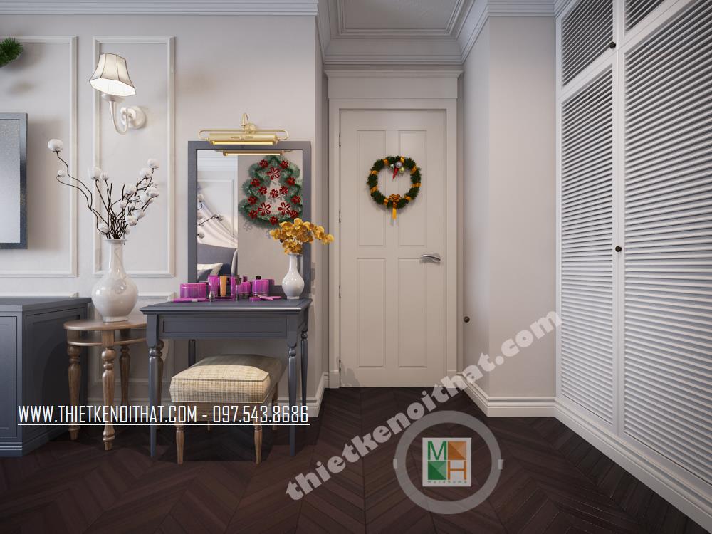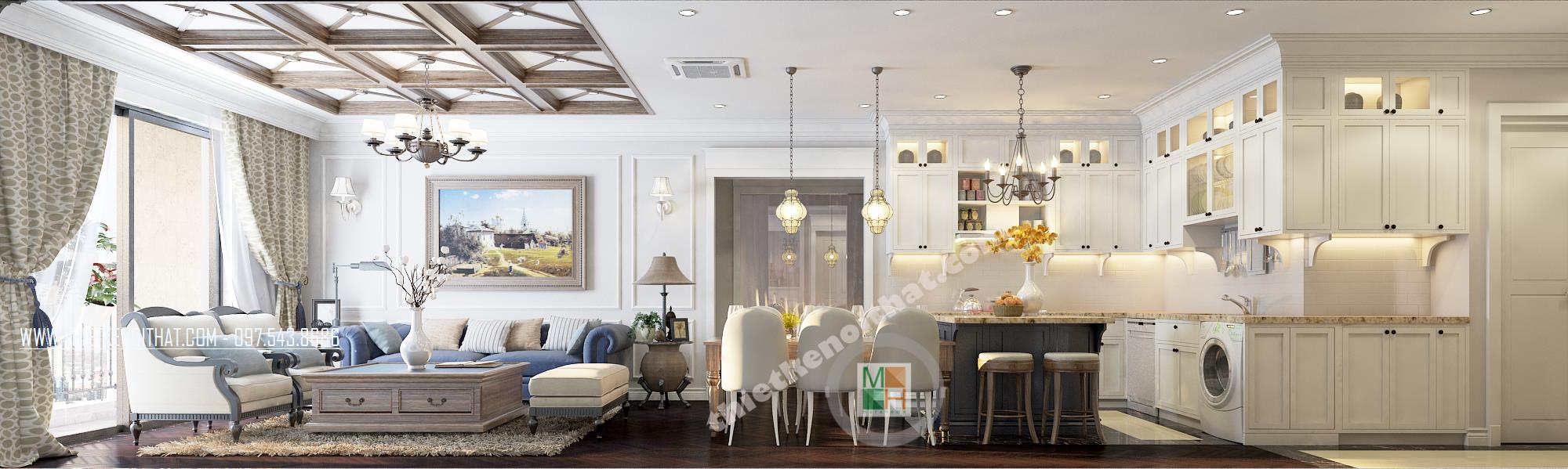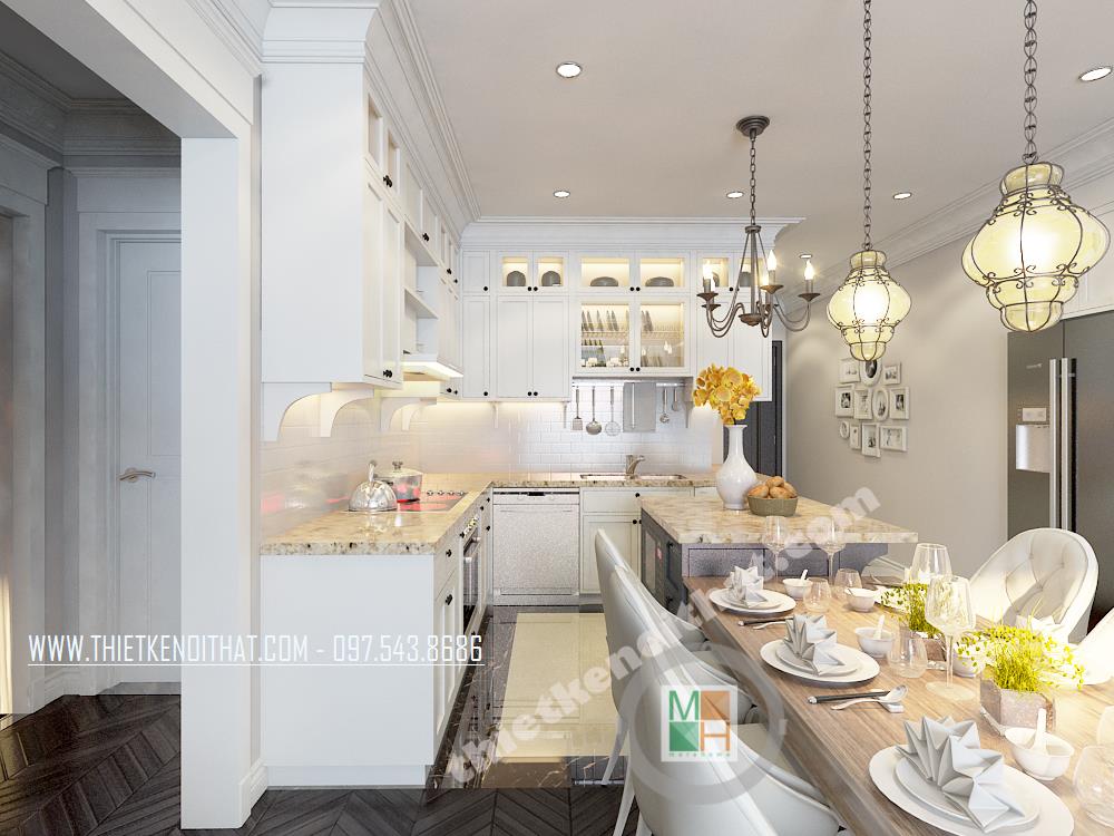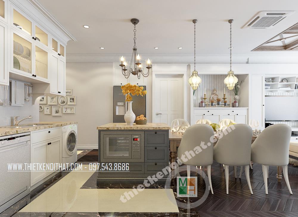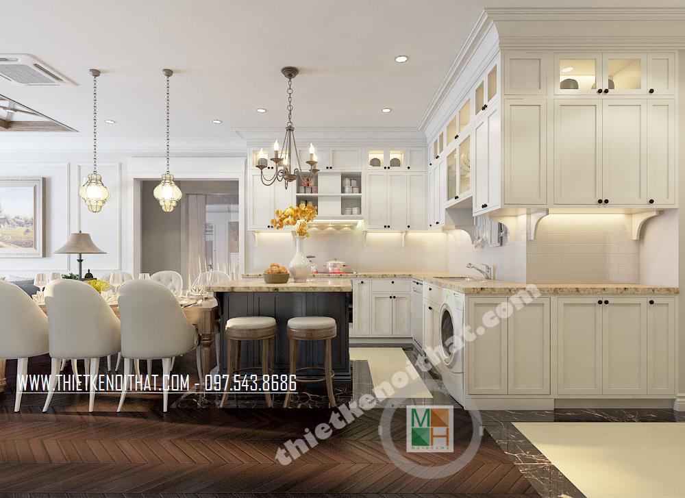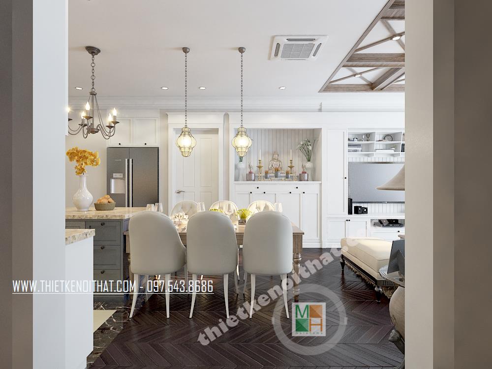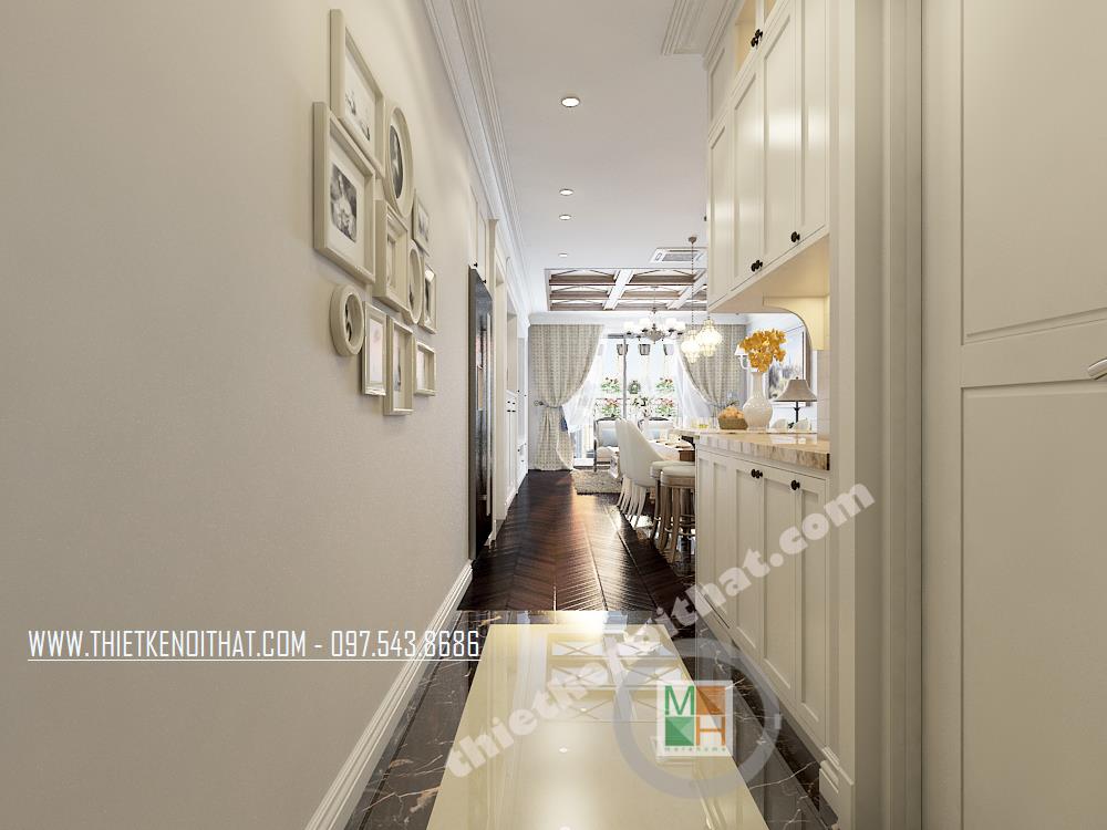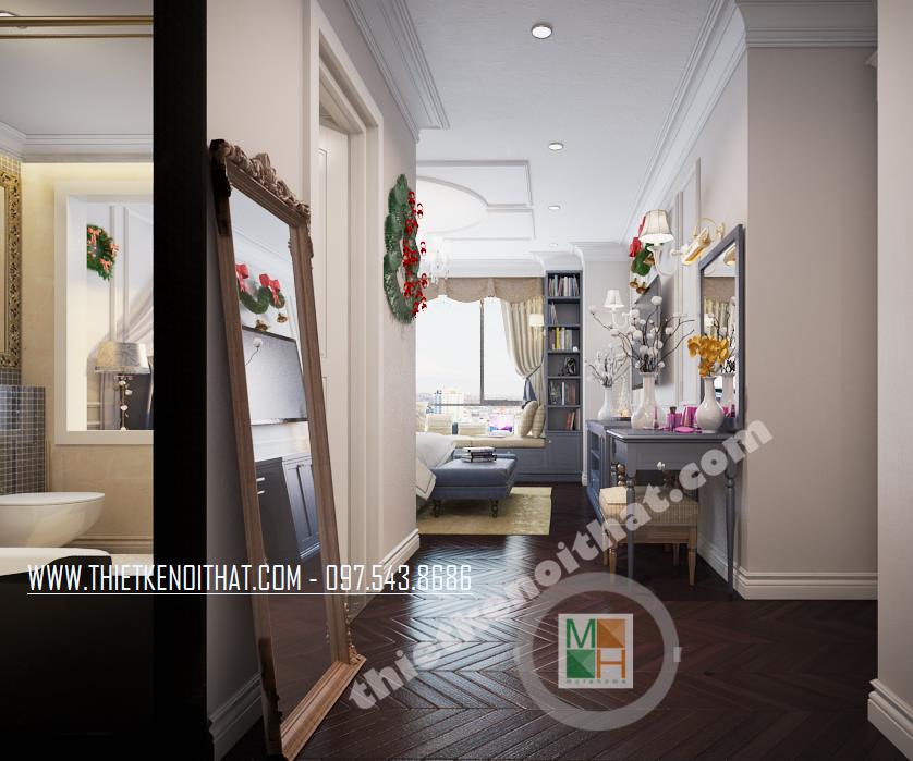 Đây là một trong những thiết kế khá ấn tượng mang phong cách nội thất tân cổ điển nằm trong khu căn hộ cao cấp TimesCity. Thiết kế nhấn mạnh đến các đường nét kiến trúc tinh tế và nhẹ nhàng từ đó mang đến cảm giác sang trọng và thư giãn cho gia chủ. Với đặc điểm của kiến trúc theo phong cách cổ điển là nhấn mạnh đến các đường cong tinh tế và các chi tiết trang trí cầu kỳ, căn nhà mang đến cho gia chủ một cảm giác tiện nghi, sang trọng phá cách mà không quá rối mắt.