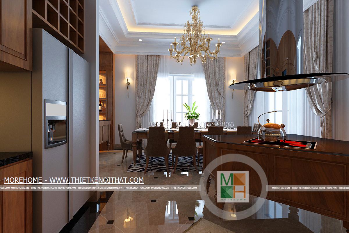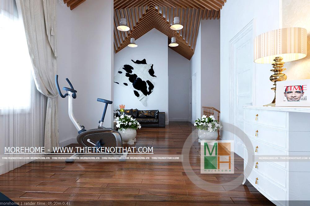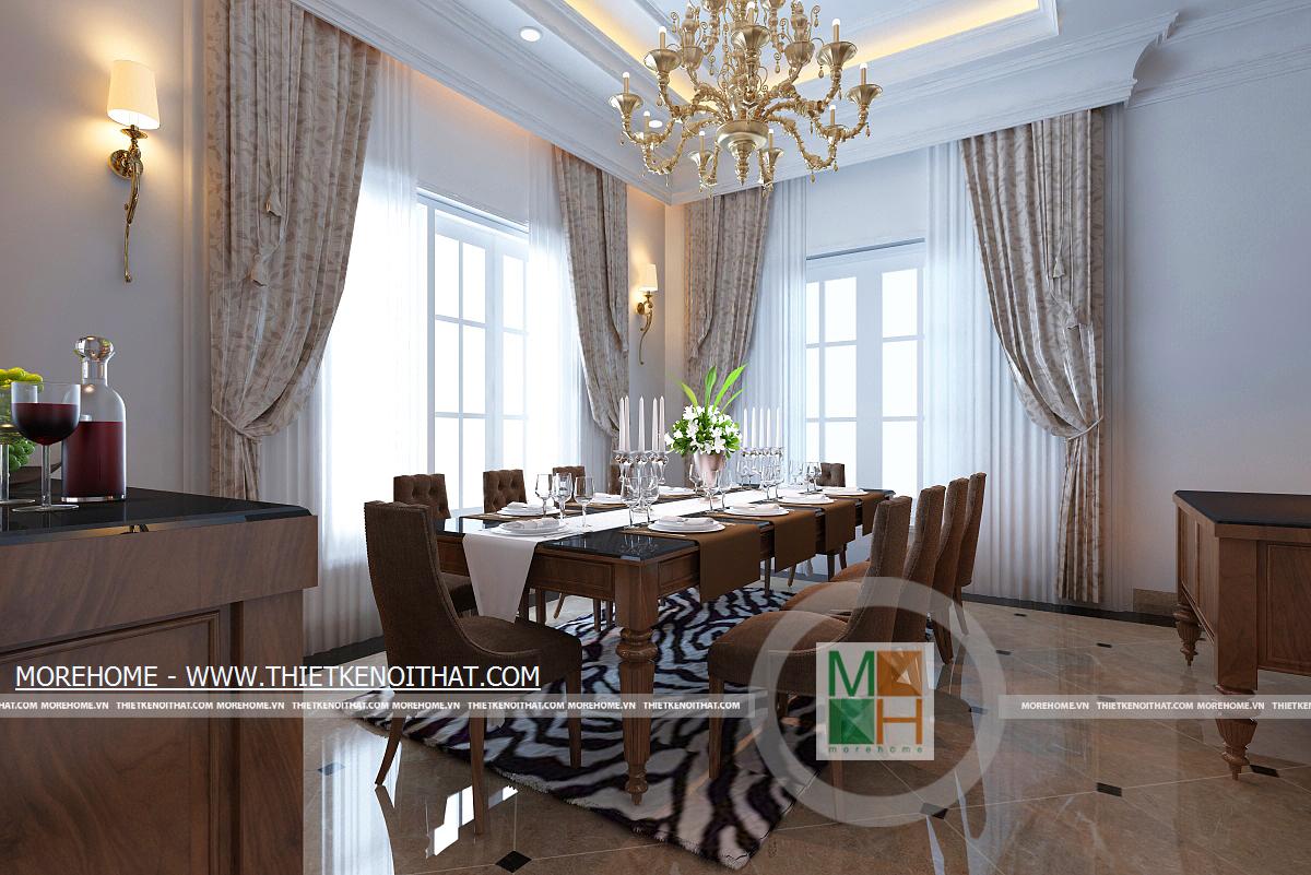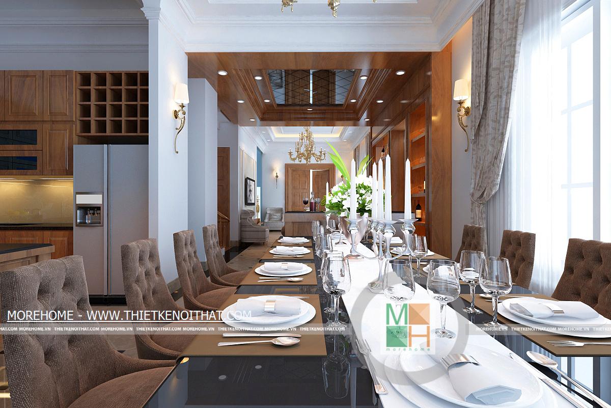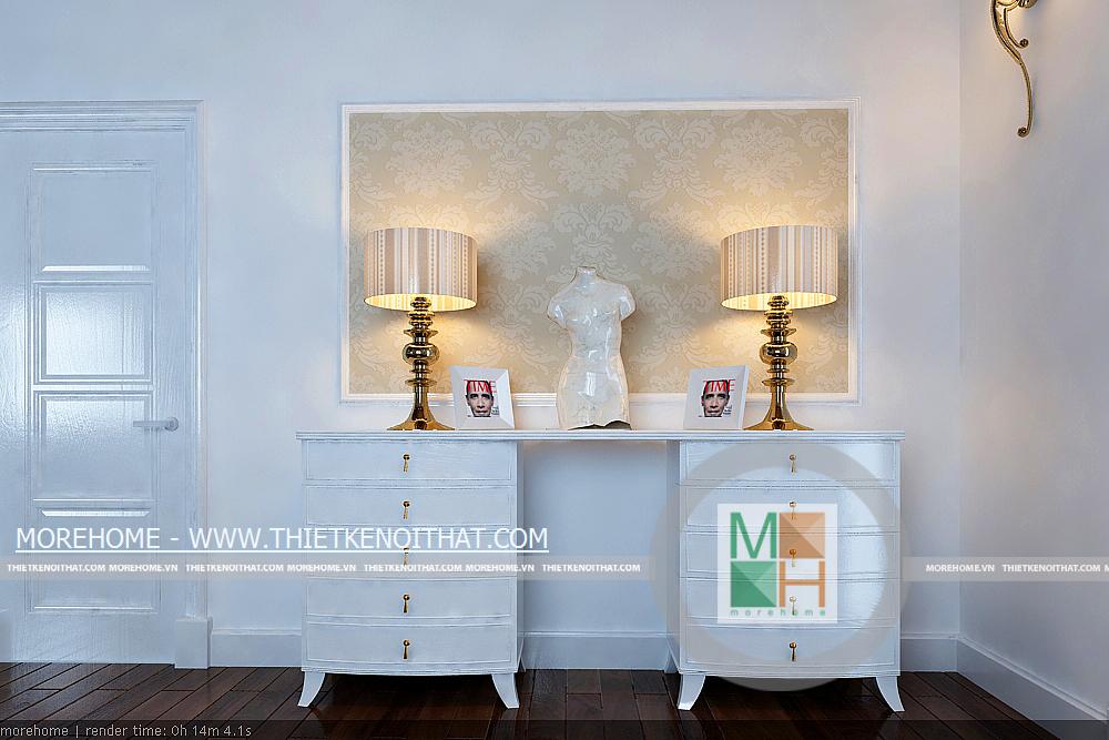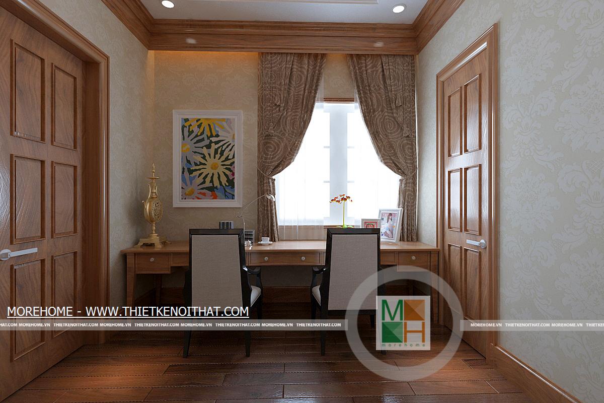 Sự kết tinh giữa phong cách tân cổ điển châu Âu với phong cách gỗ Việt tạo nên sự đẳng cấp nhưng cũng thật sự gần gũi trong nội thất biệt thự Vincom Village của anh Ngọc