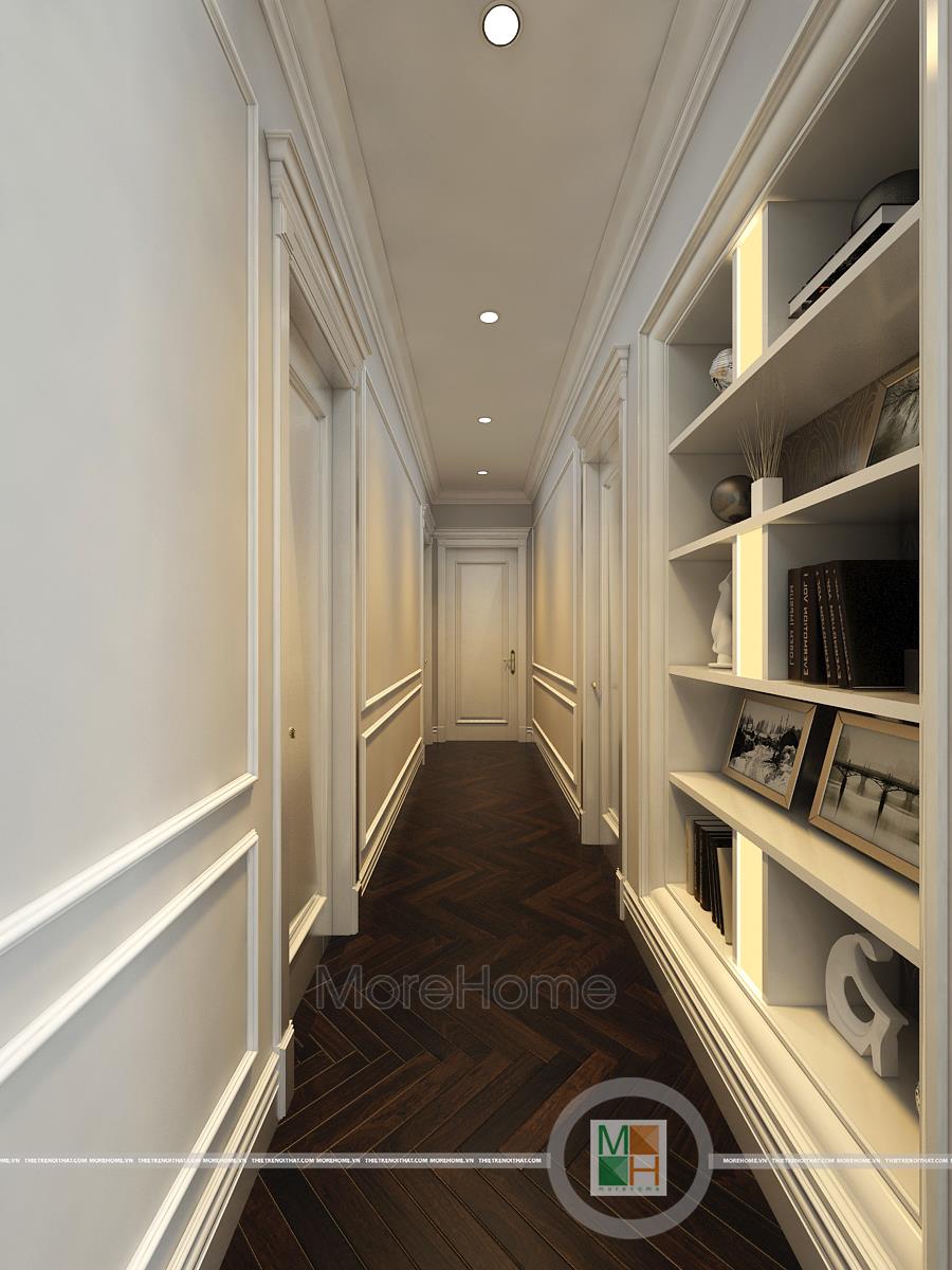 Căn hộ Penthouse Imperia Garden là căn hộ thiết kế theo hướng tân cổ điển chính vì vậy các đường nét được chú trọng hơn cả, các góc nét trạm trổ tính tế và tỉ mỉ được kiến trúc sư vô cùng chú ý. Không giống với các thiết kế hiện đại coi trọng các hình khối đơn giản, rõ ràng, các đường cong tân cổ điển mang đến sự phóng khoáng, sang trọng gợi vẻ đẹp châu Âu cổ. Thiết kế mảng tường khác biệt, sử dụng đá tự nhiên với độ sáng và bóng phù hợp góp phần tạo độ tương phản và tăng tính thẩm mỹ, tính sáng tạo cho thiết kế.