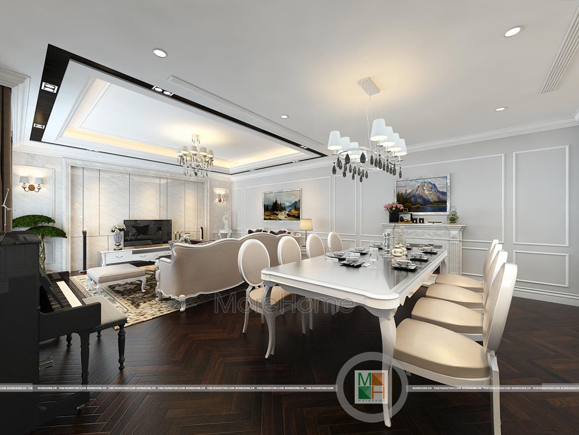 Đối với mỗi căn nhà, không gian nội thất bàn ăn là một trong những không gian vô cùng quan trọng, không đơn giản là nơi quây quần ăn uống, bàn ăn còn là nơi mọi thành viên dành thời gian trò chuyện, chơi đùa và chia sẻ với nhau. Chính vì vậy mà thiết kế nội thất không gian này luôn hướng đến sự dễ chịu, tiện nghi. Không quá cầu kỳ trong trang trí, không sử dụng các tone màu chói, quá nổi bật, không gian bàn ăn gợi sử tinh tế và dễ chịu. Thiết kế bàn chữ nhật dài, rộng đủ không gian cho cả đại gia đình và khá linh hoạt trong các bữa tiệc của gia đình.