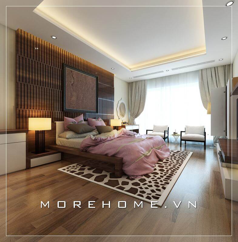 Thiết kế giường ngủ ông bà đẹp với gam màu nâu tầm sang trọng